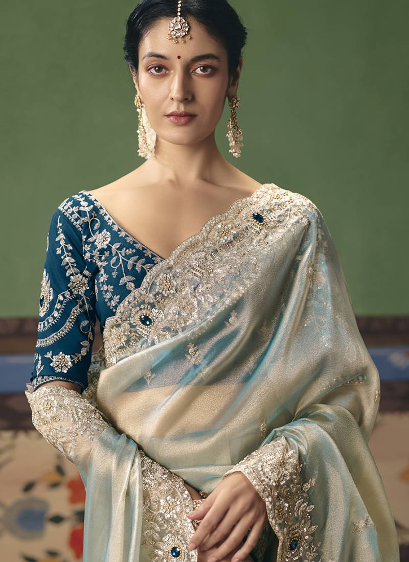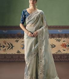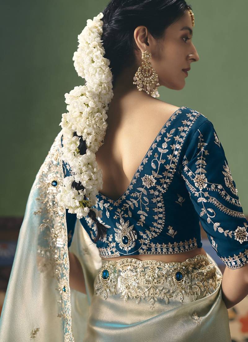 Silver designer embroidery fancy occasion wear saree