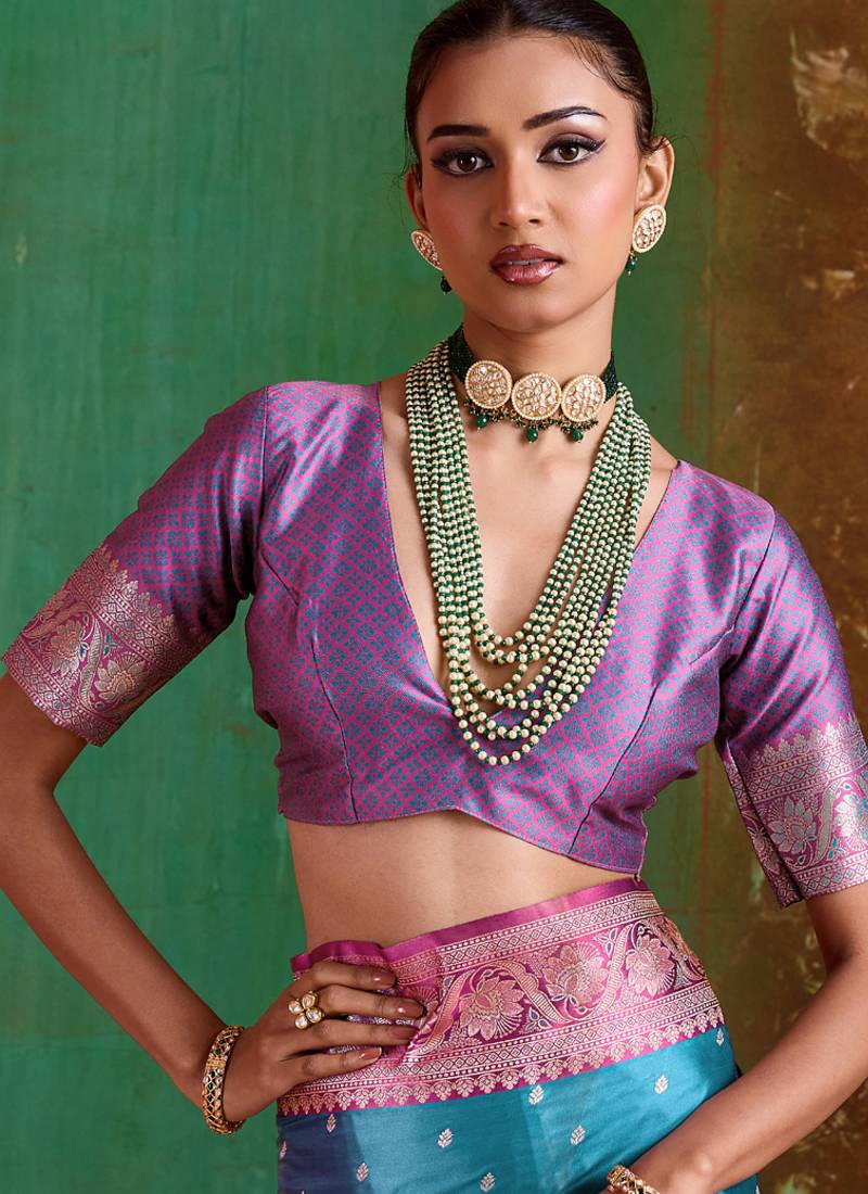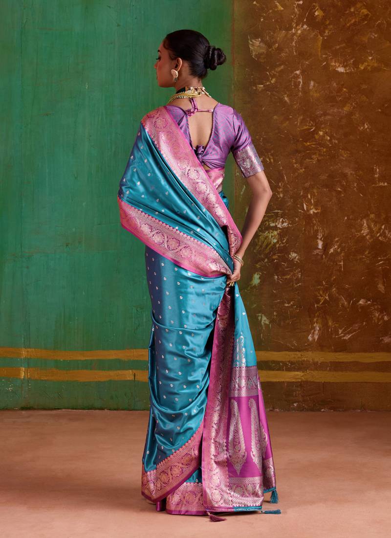 | Product Name | Sky Blue Satin Handloom Weaving Silk With Contrast Border And Pallu | |