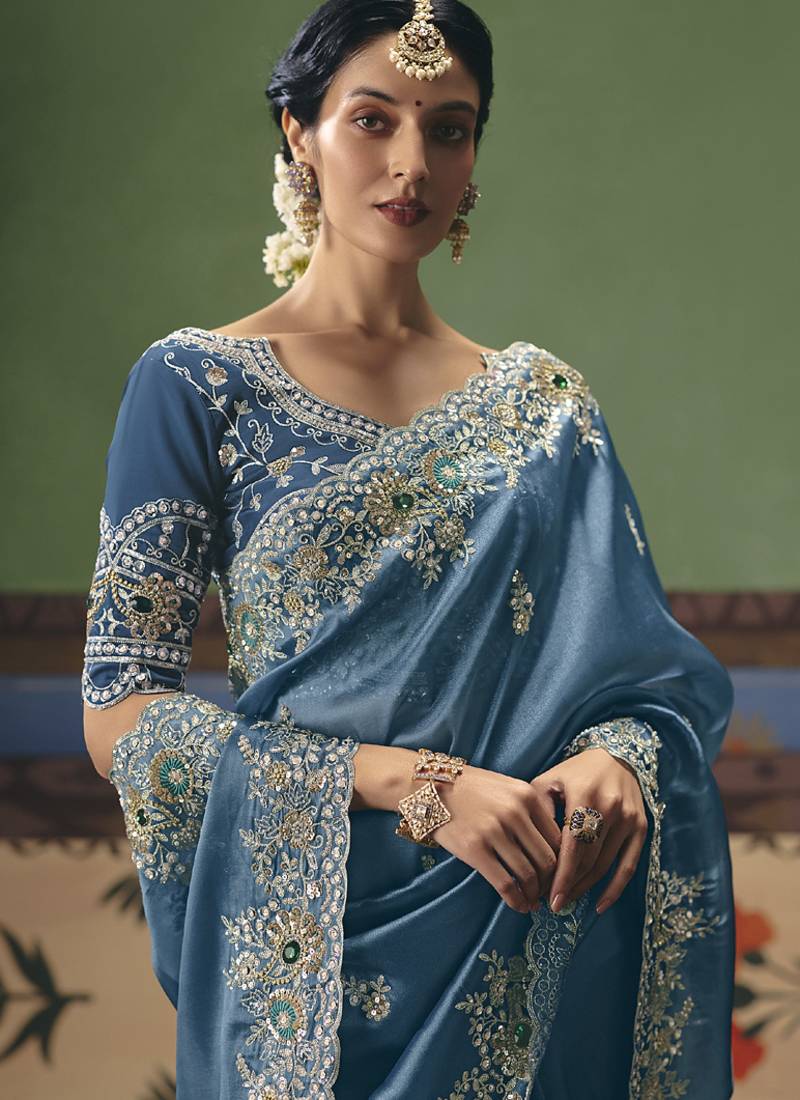 | Product Name | Steel Blue Designer Embroidery Fancy Occasion Wear Saree | |