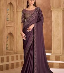 Wine silk sartin chiffon saree & banglori work blouse