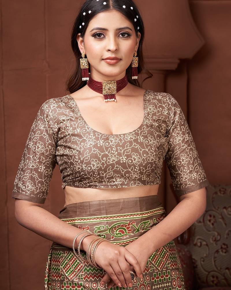 | • | Saree | : | Color- Coffee / Fabric- Pure Cotton |