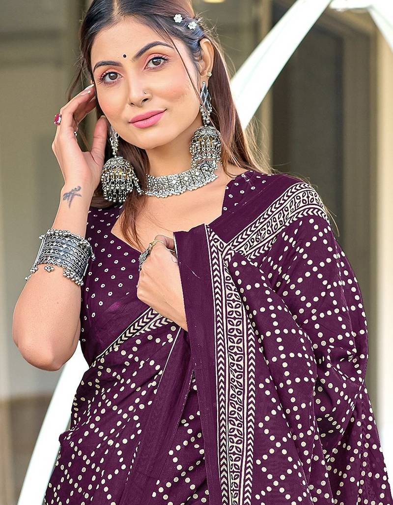 | • | Saree | : | Color- Wine / Fabric- Pure Cotton |