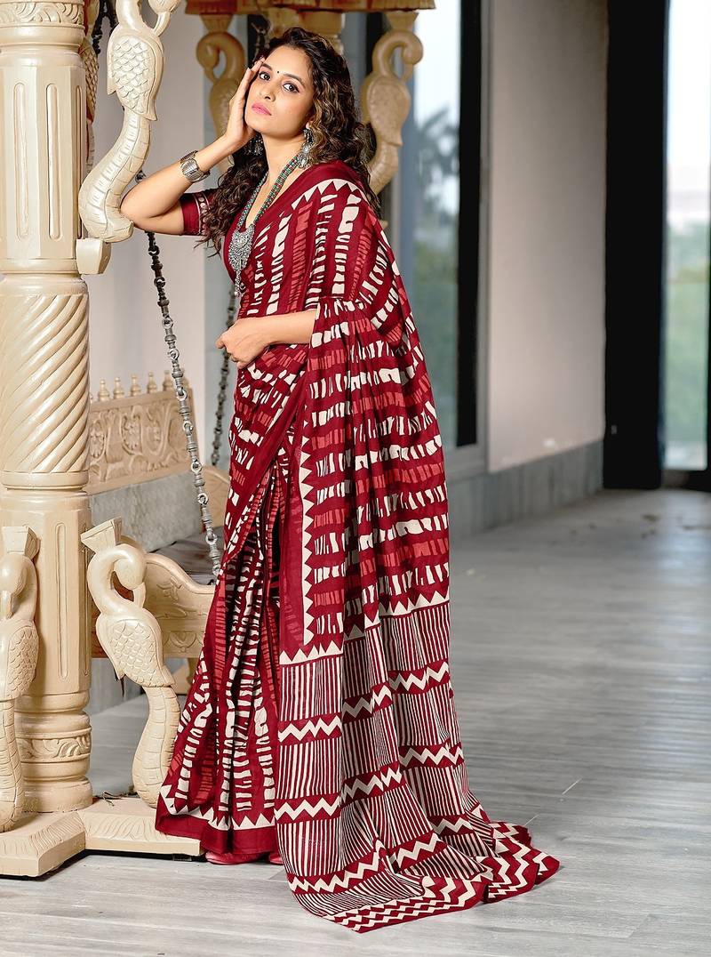 | • | Saree | : | Color- Maroon / Fabric- Pure Cotton |