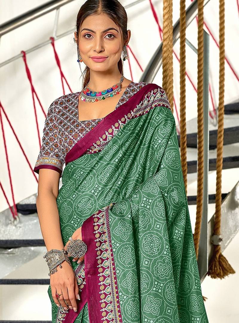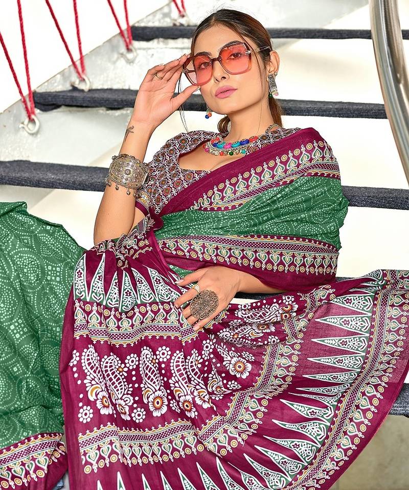 Bandhani hand block print mulmul cotton sarees