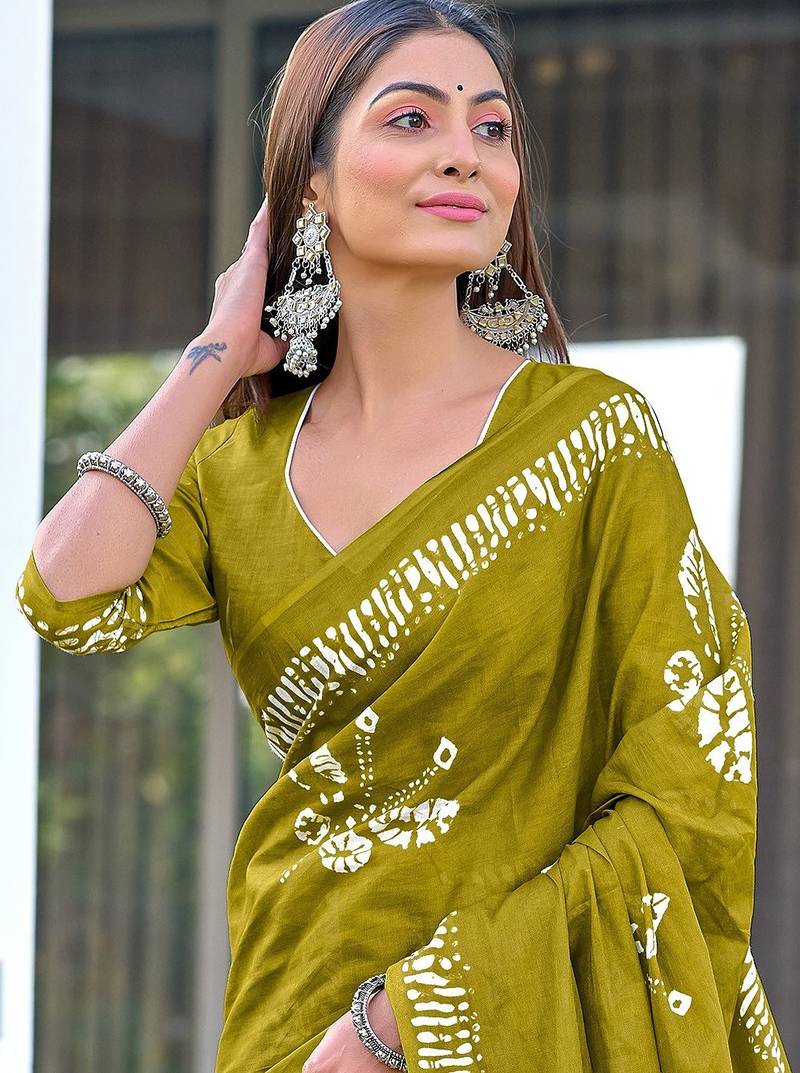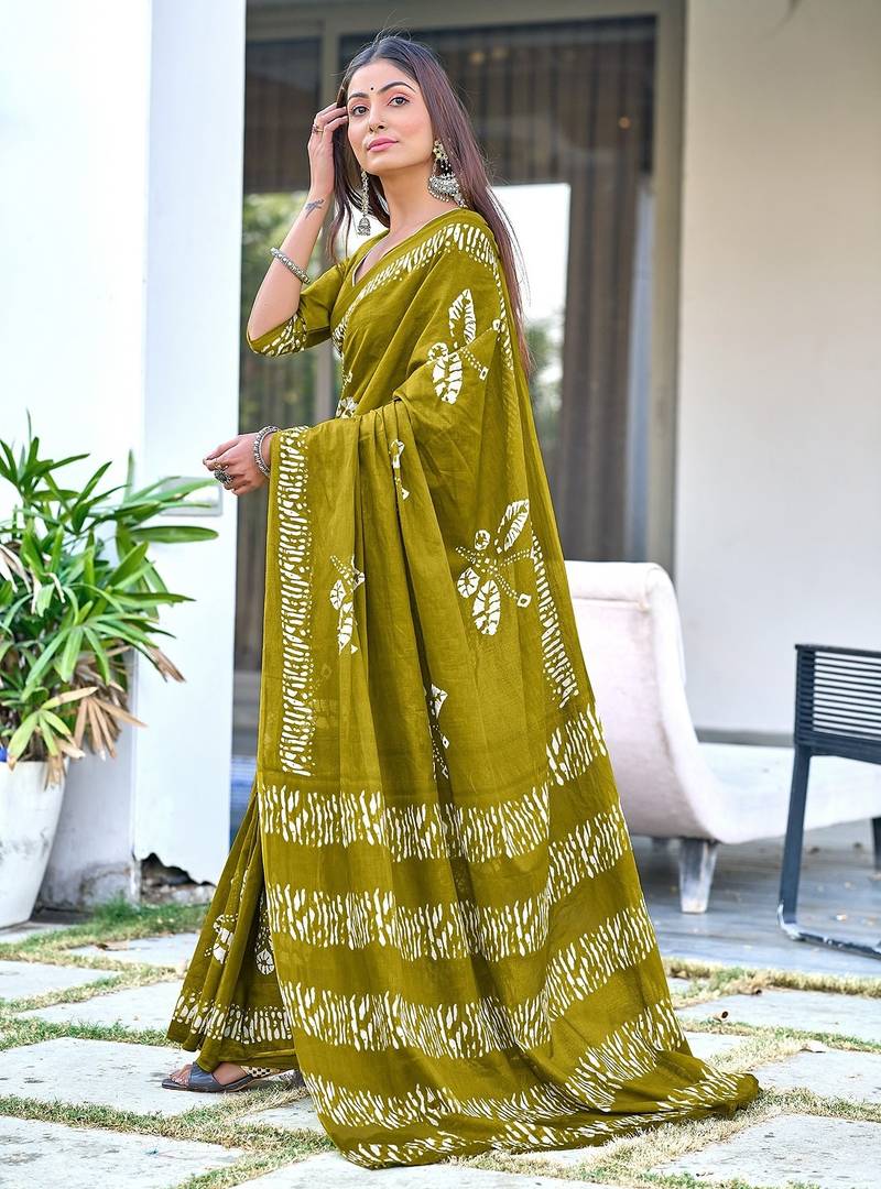 Batik butterfly hand block mulmul cotton sarees