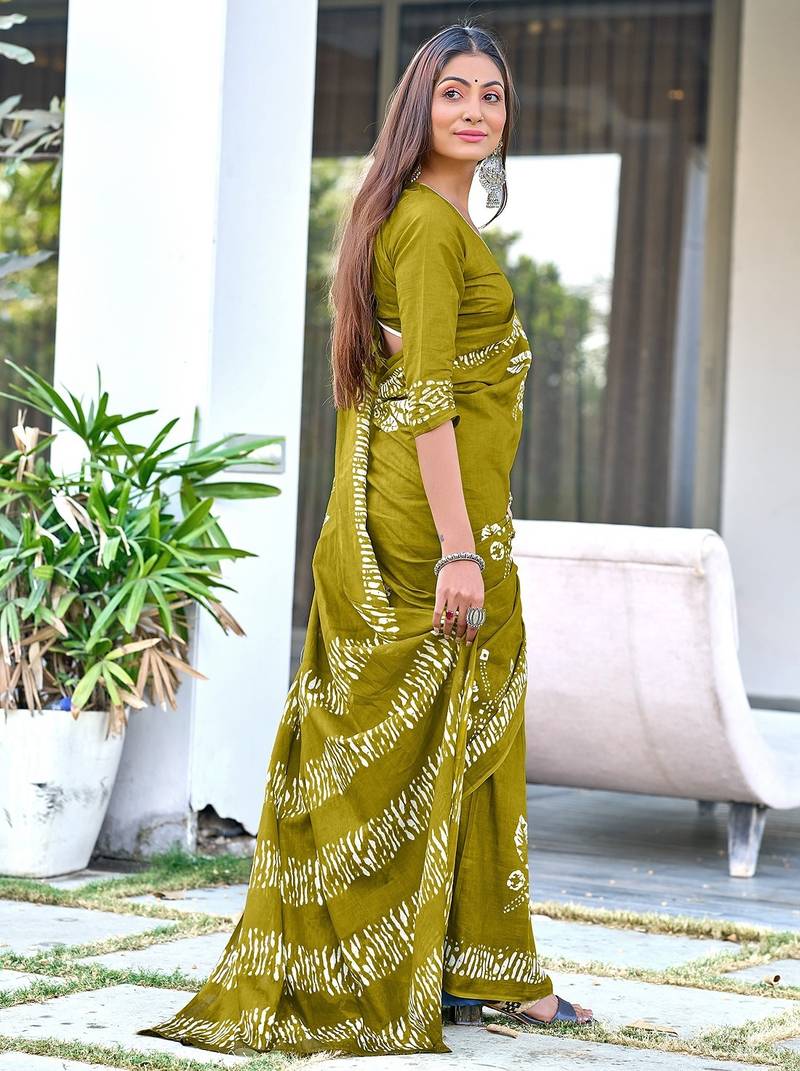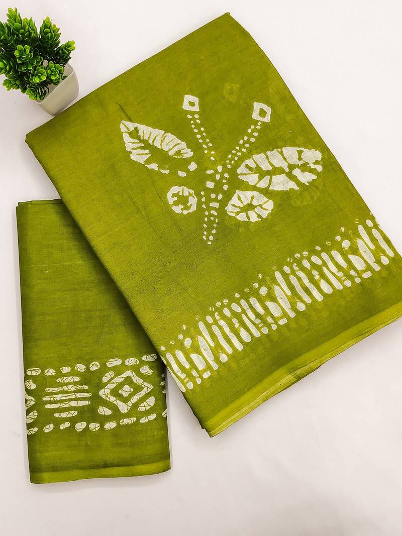 | • | Saree | : | Color- Olive / Fabric- Pure Cotton |