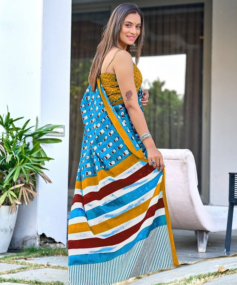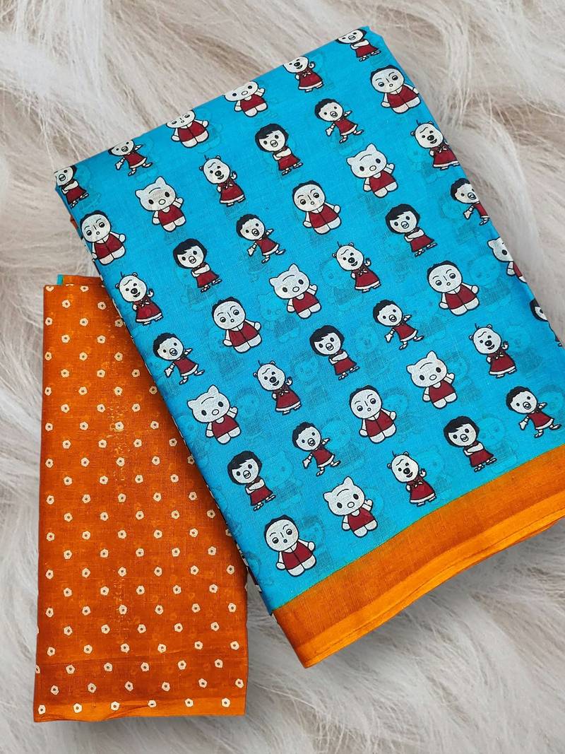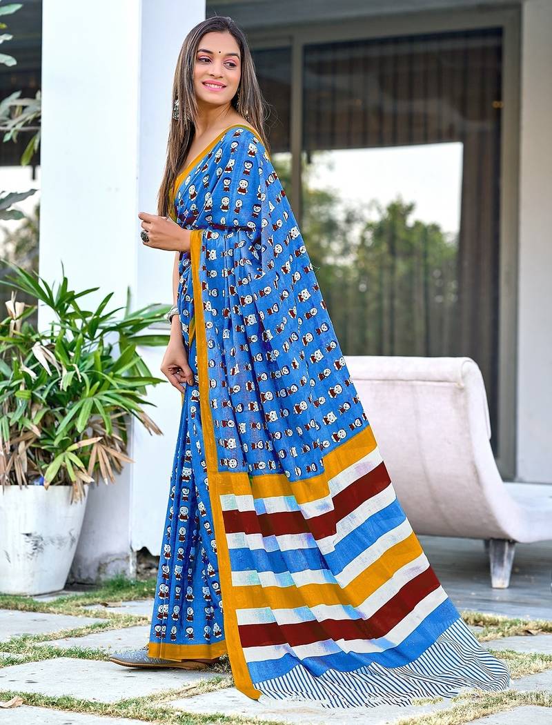 | Product Name | Cartoon Hand Block Mulmul Cotton Sarees | |