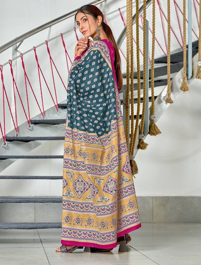 | • | Saree | : | Color- Teal / Fabric- Pure Cotton |