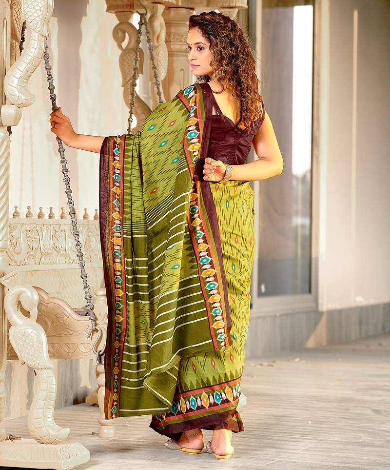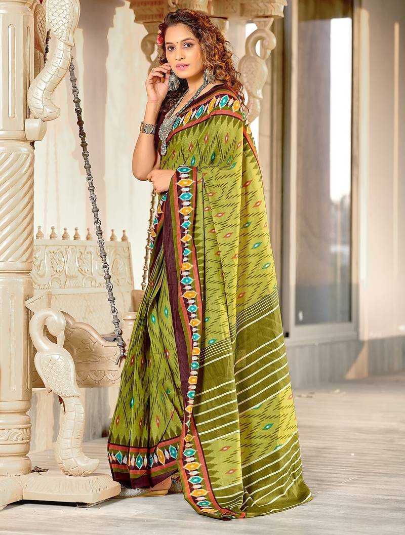 | • | Saree | : | Color- Mehendi / Fabric- Pure Cotton |