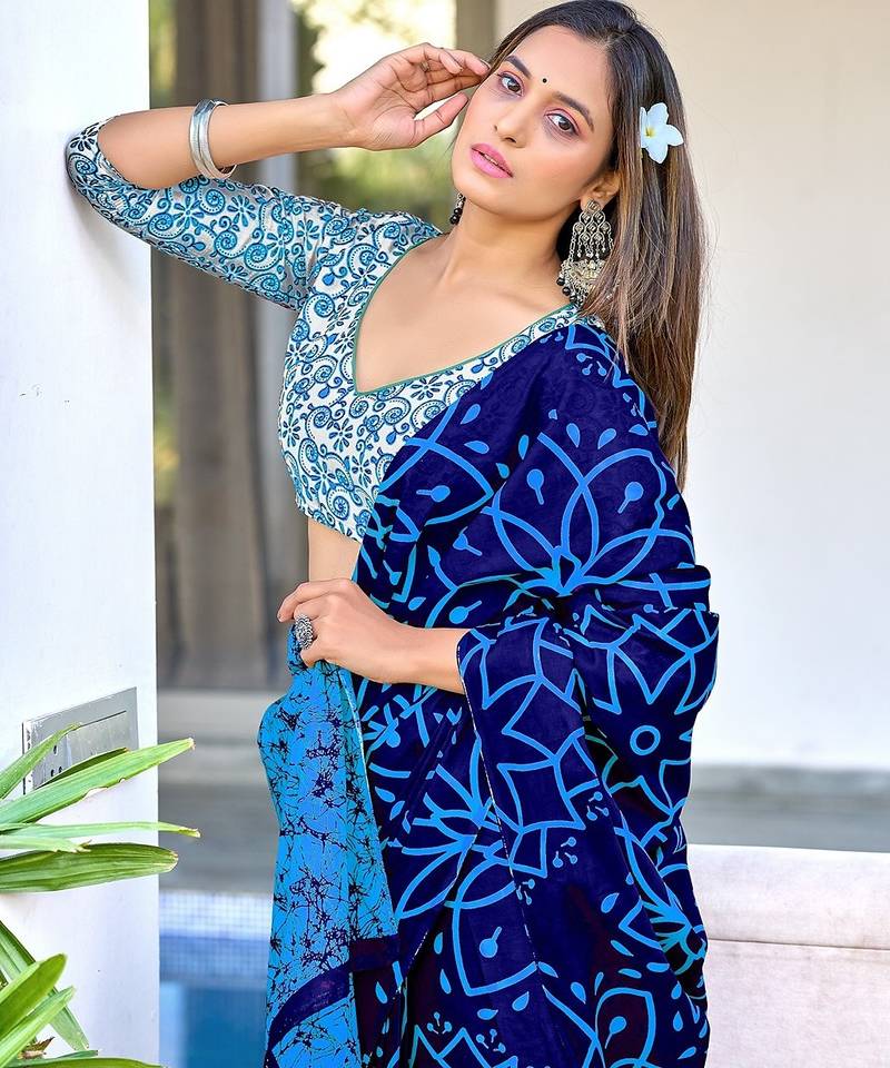| • | Saree | : | Color- Dark Blue / Fabric- Pure Cotton |