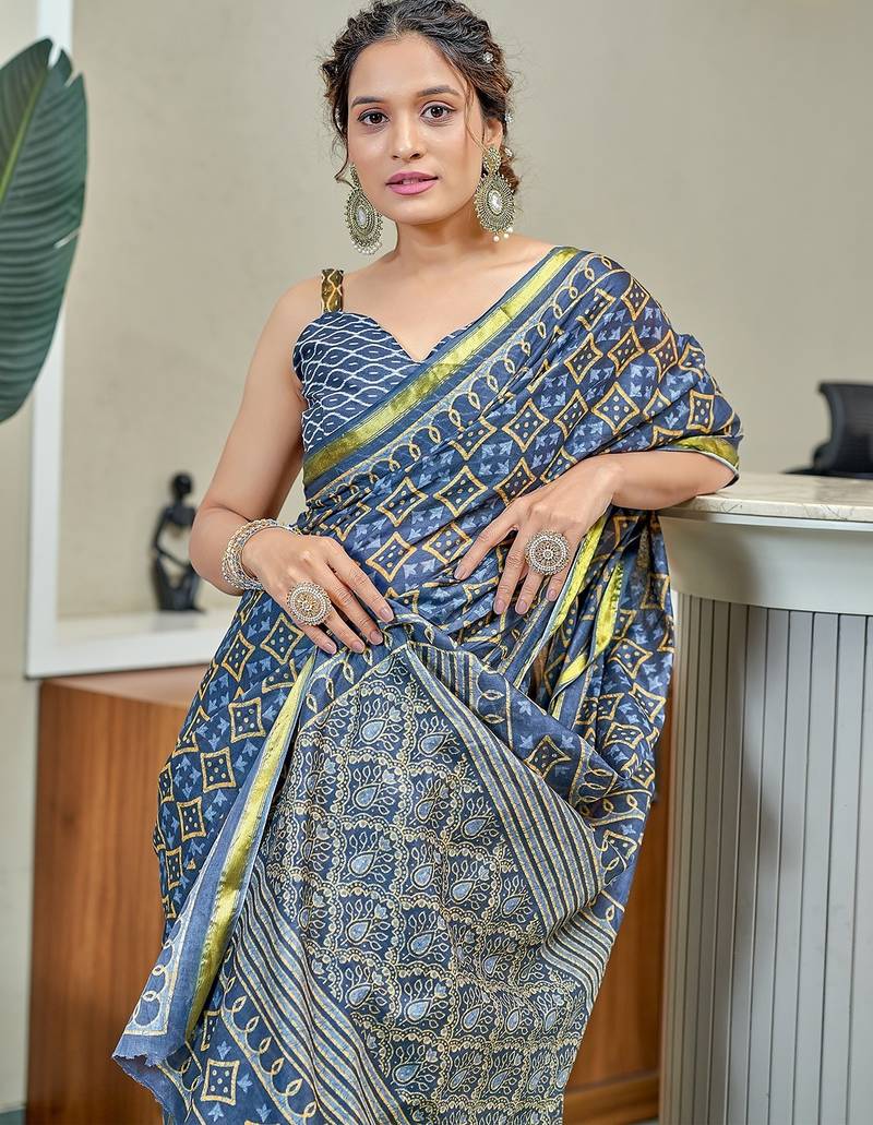 | Product Name | Hand Block Print With Hevay Zari Bodar Sarees | |