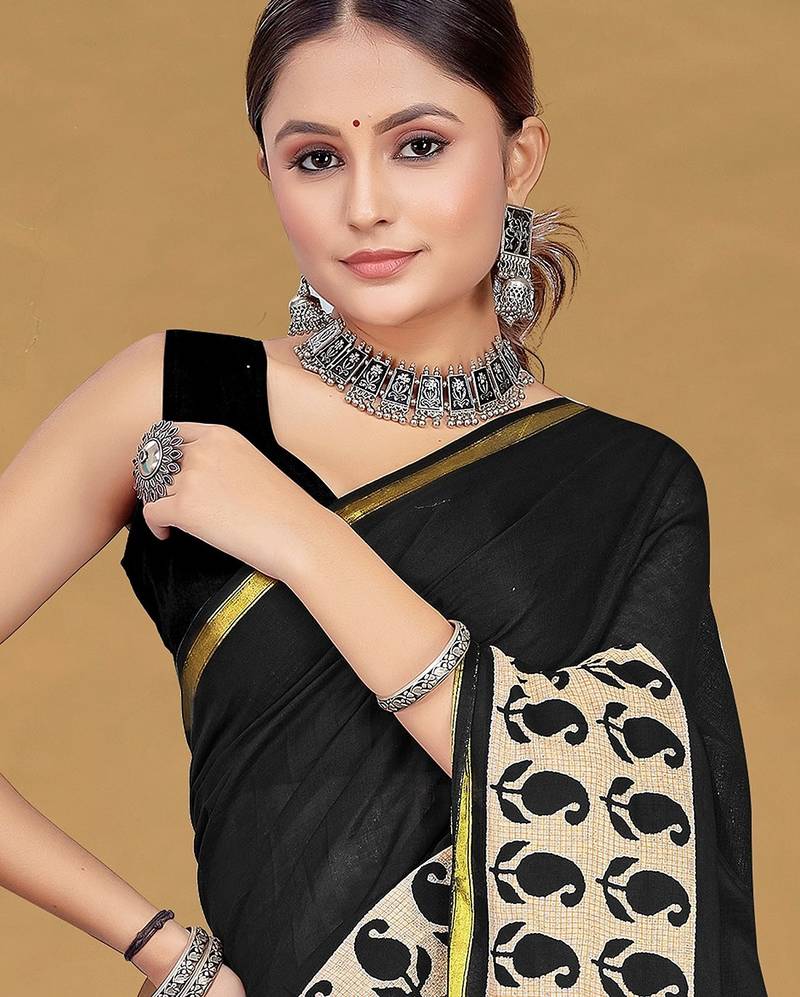 | • | Saree | : | Color- Black / Fabric- Pure Cotton |