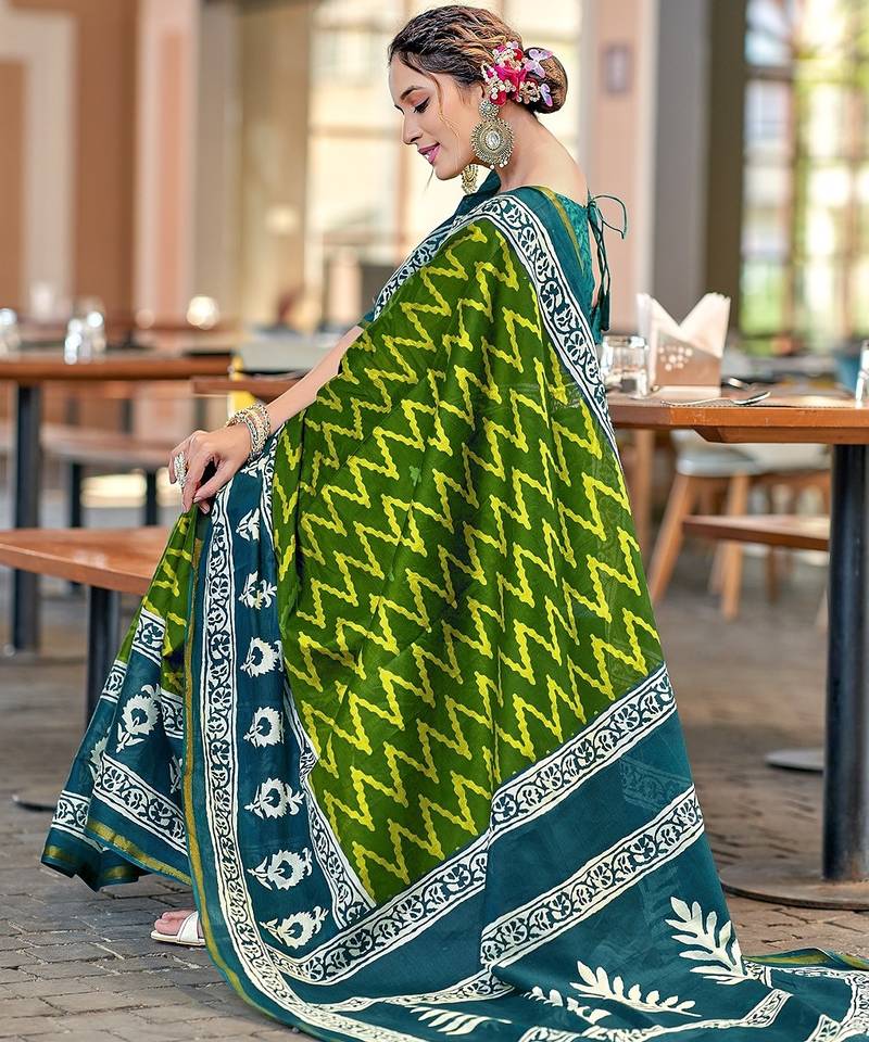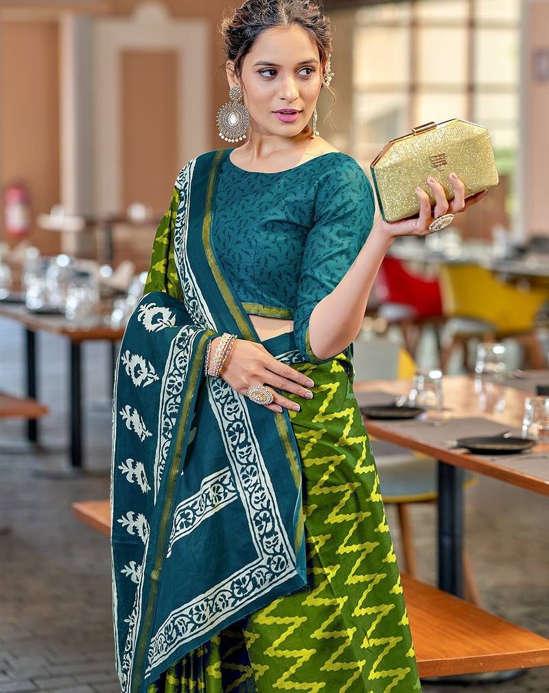 | • | Saree | : | Color- Mehendi / Fabric- Pure Cotton |