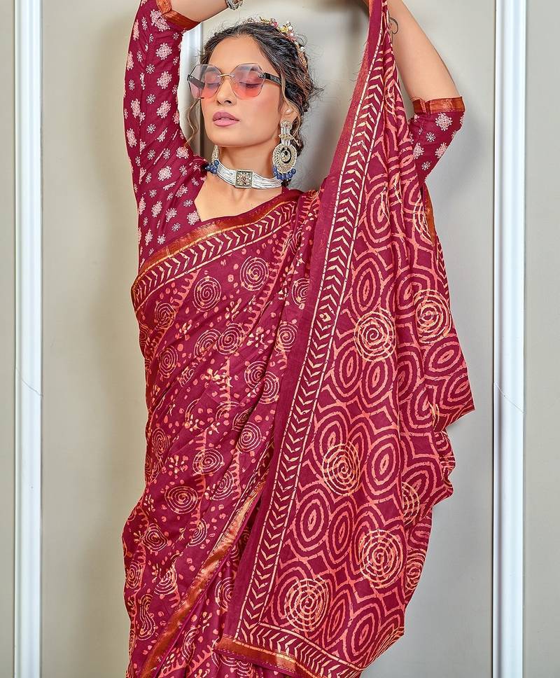 Hand block print with hevay zari bodar sarees