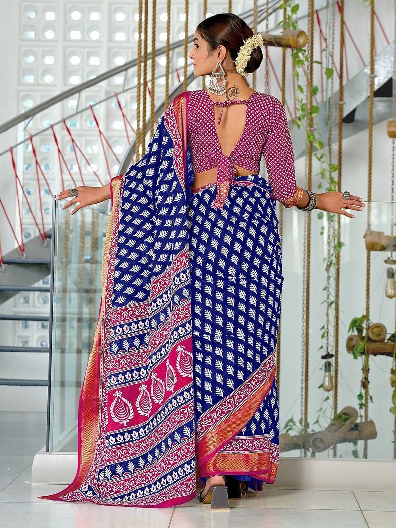 | Product Name | Hand Block Print With Hevay Zari Bodar Sarees | |