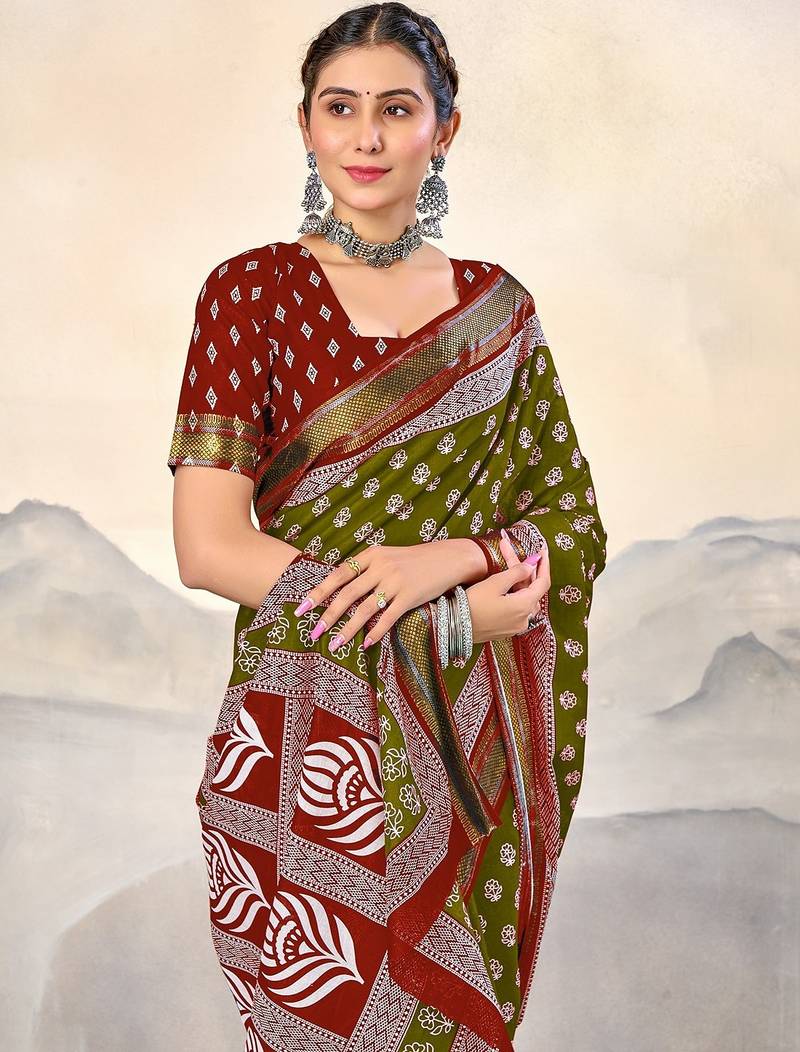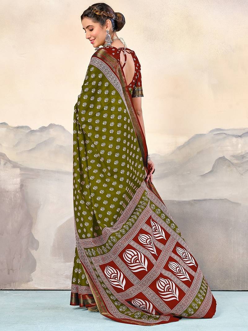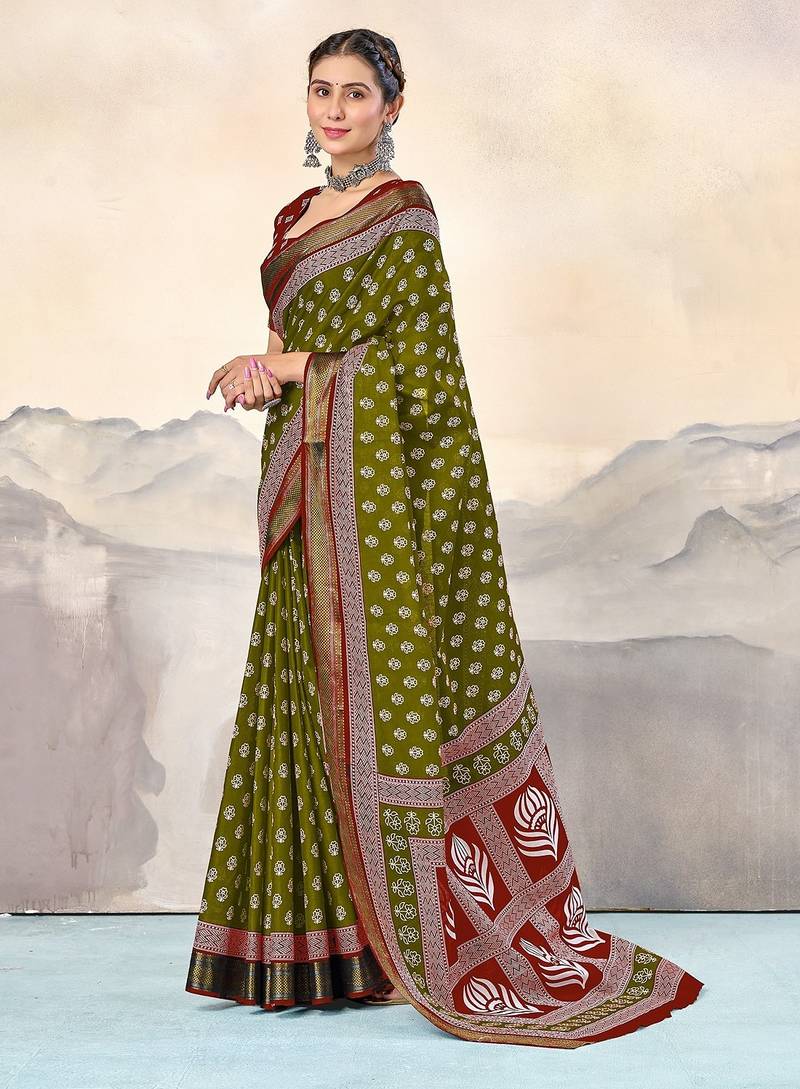 | • | Saree | : | Color- Mehendi / Fabric- Pure Cotton |