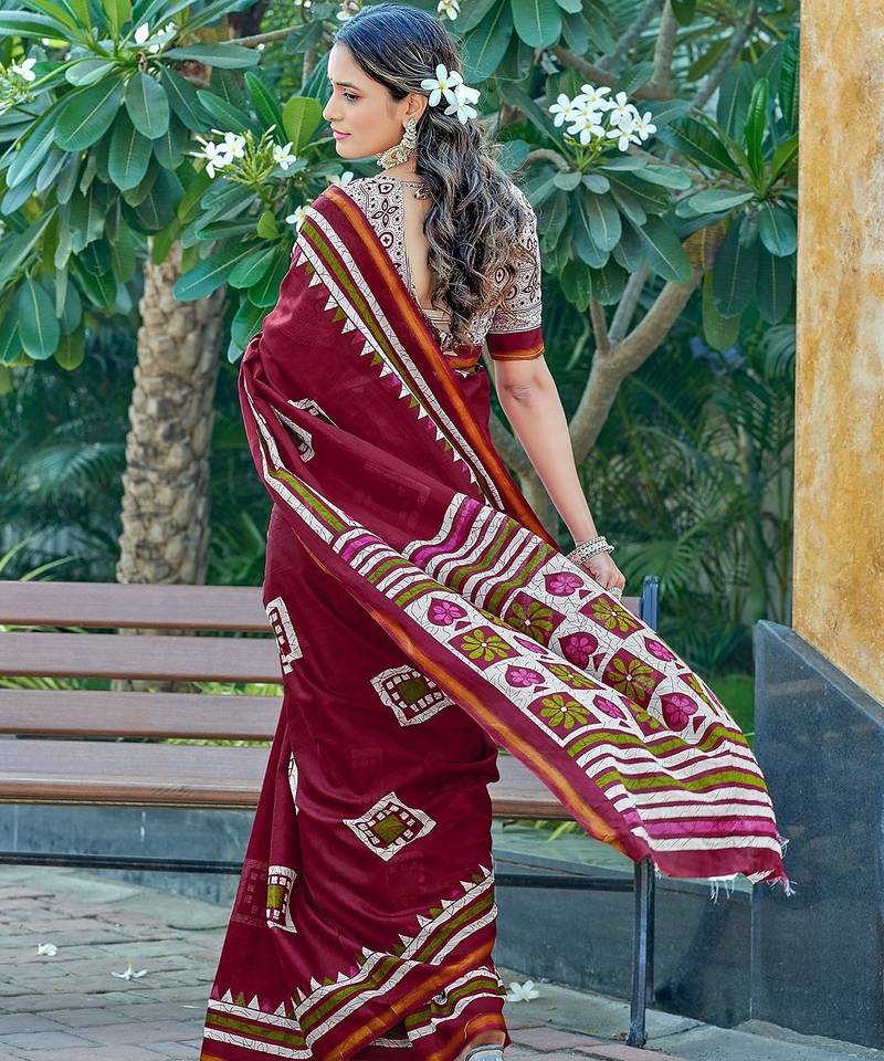 | • | Saree | : | Color- Maroon / Fabric- Pure Cotton |