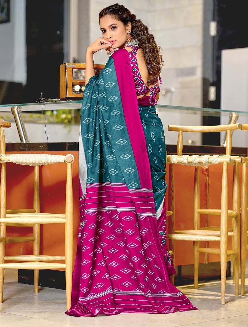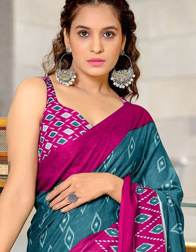 | • | Saree | : | Color- Teal / Fabric- Pure Cotton |