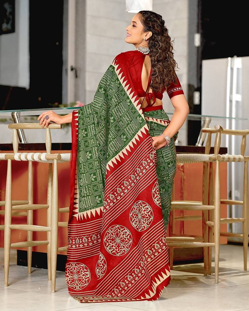 | Product Name | Hand Block Printed Cotton Mul Saree With Blouse | |