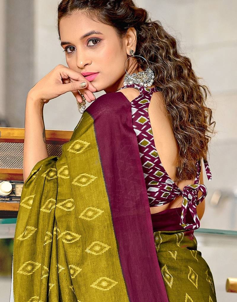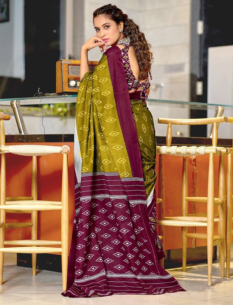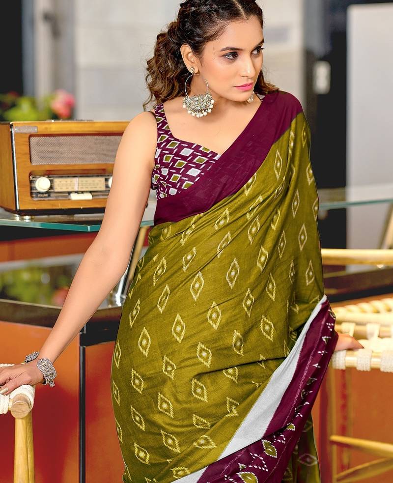 | • | Saree | : | Color- Mehendi / Fabric- Pure Cotton |