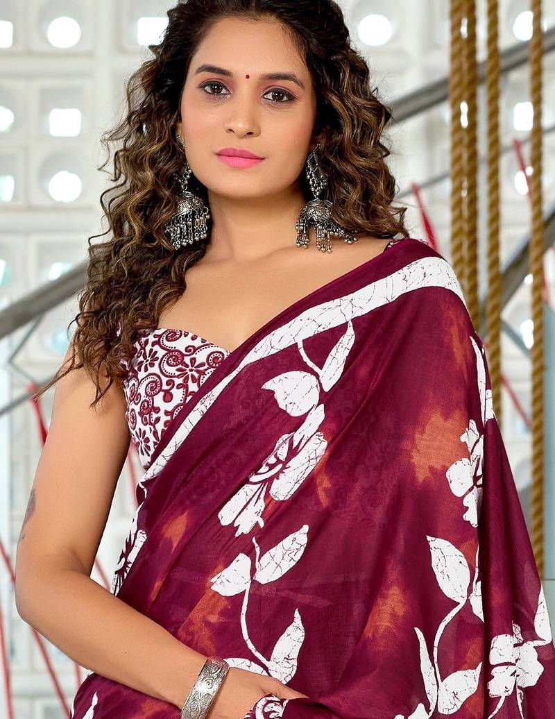 | • | Saree | : | Color- Maroon / Fabric- Pure Cotton |