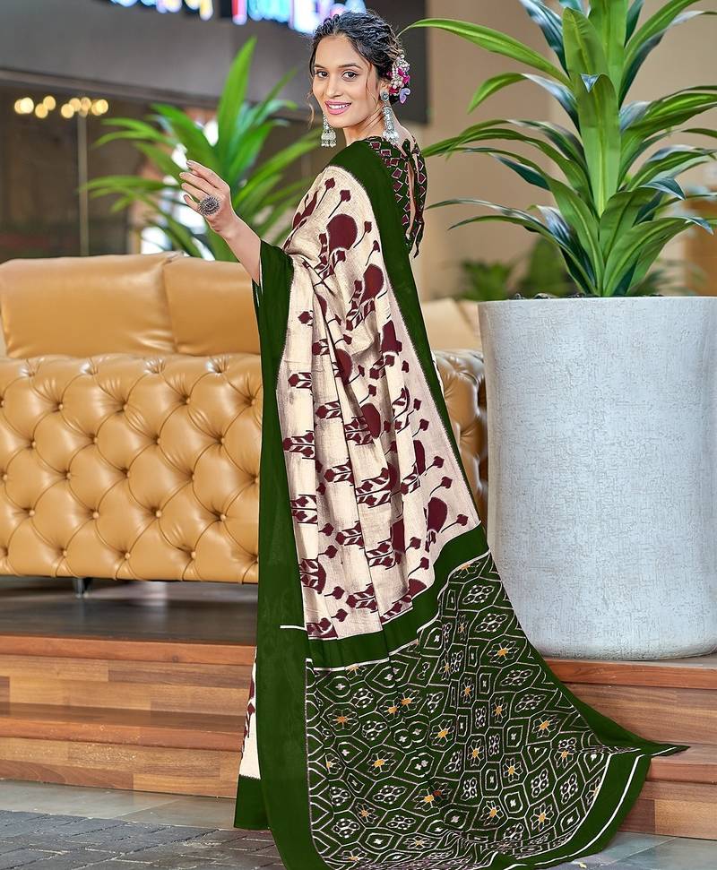 | • | Saree | : | Color- Mehendi / Fabric- Pure Cotton |