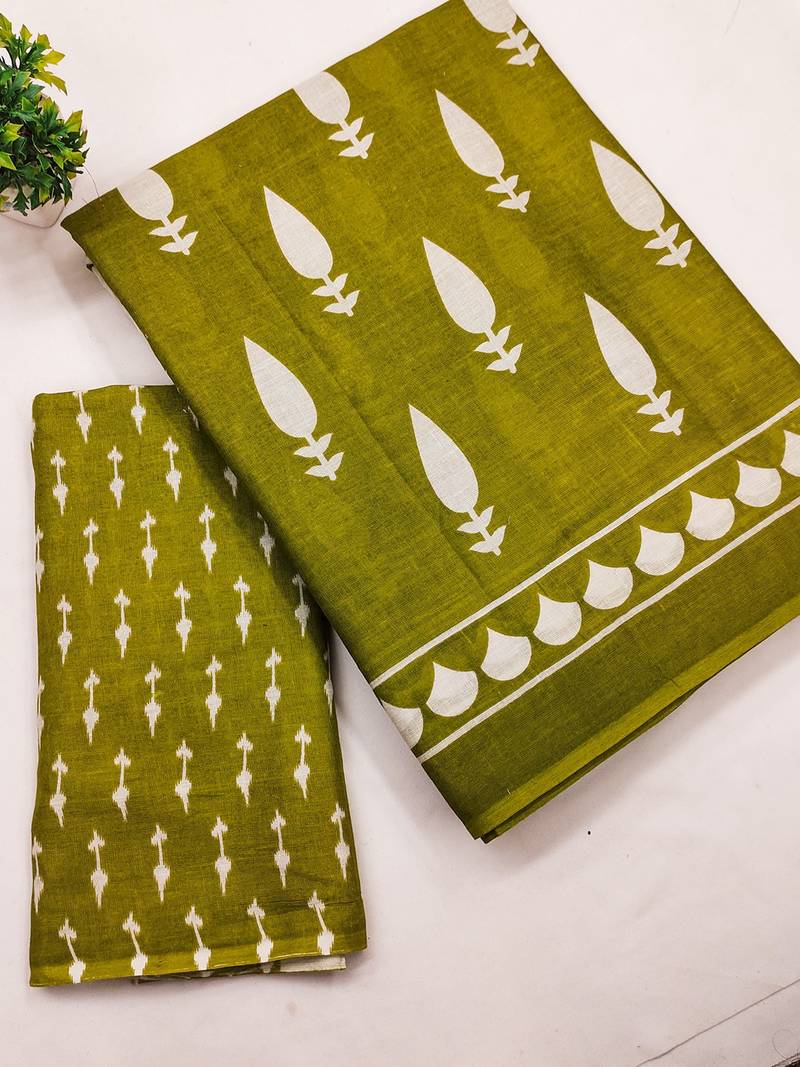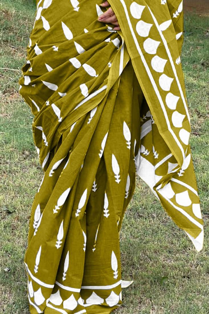 | • | Saree | : | Color- Mehendi / Fabric- Pure Cotton |