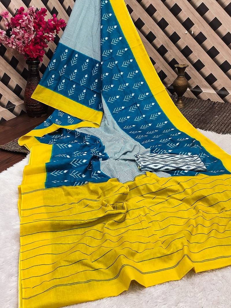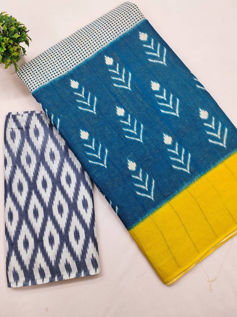 | Product Name | Pure Cotton Fancy Ikkat Print Sarees With Blouse Pice* | |