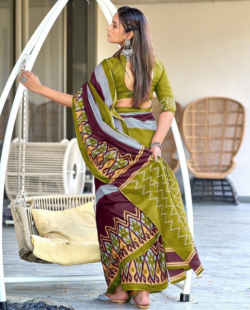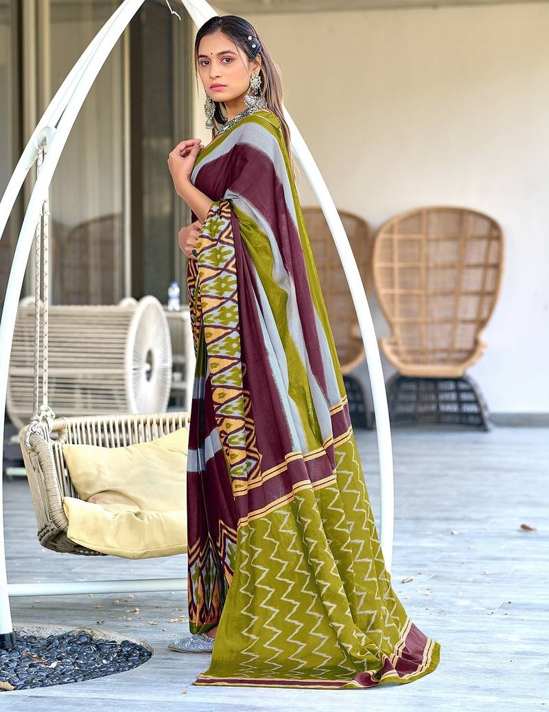 | • | Saree | : | Color- Mehendi / Fabric- Pure Cotton |