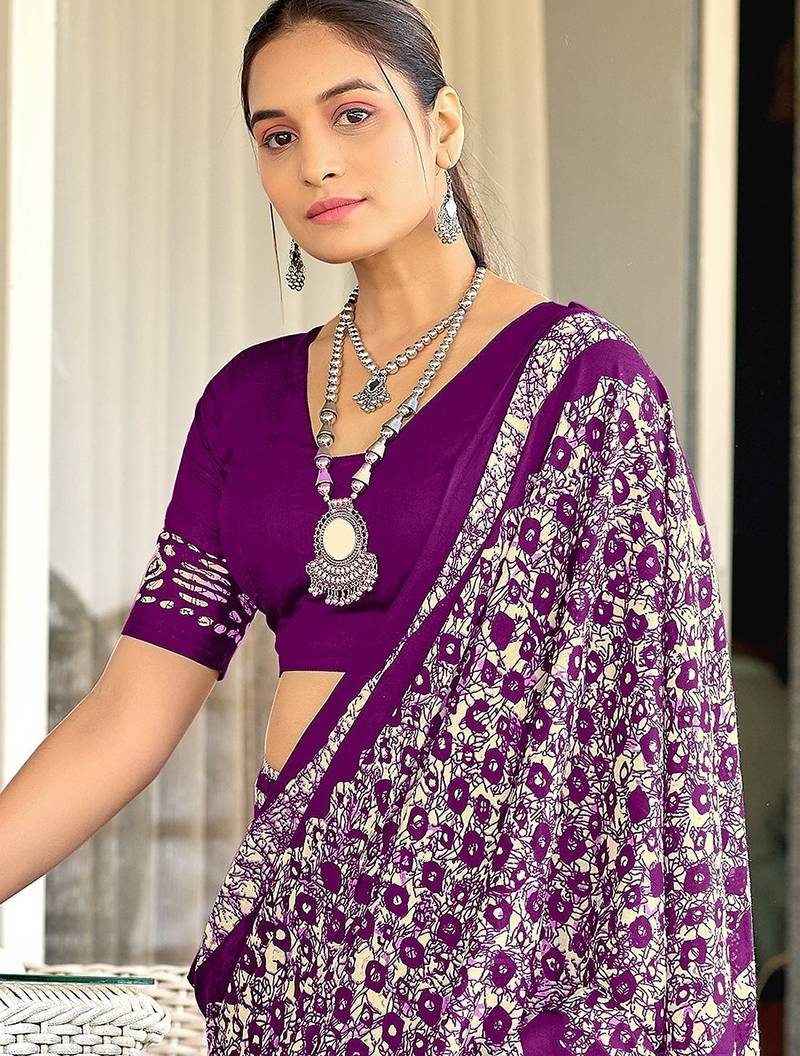 | • | Saree | : | Color- Purple / Fabric- Pure Cotton |