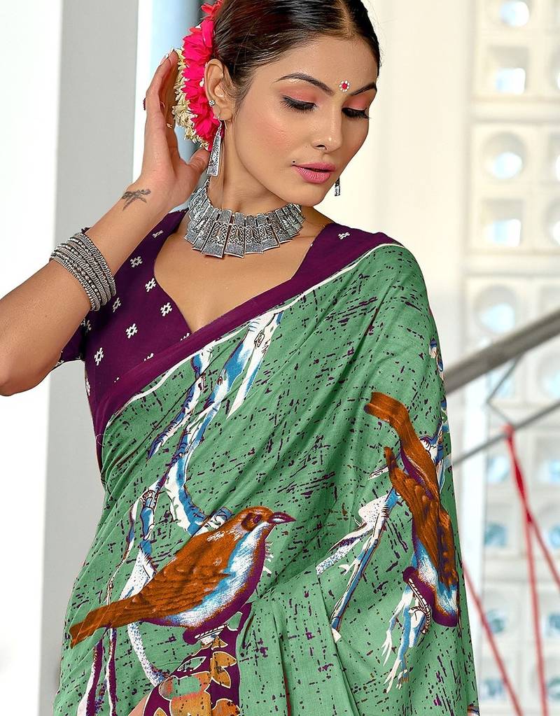 | • | Saree | : | Color- Green / Fabric- Pure Cotton |