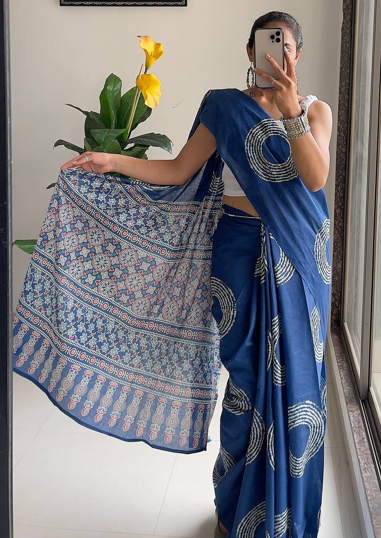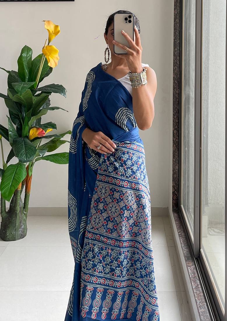 Traditional ajrakh bandhej handblock print sarees
