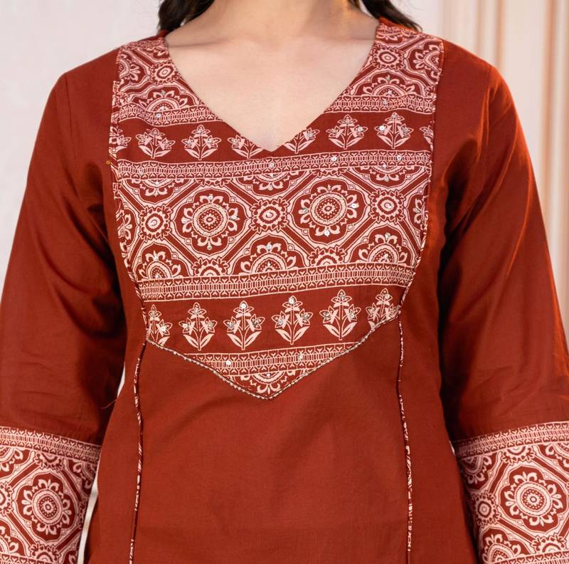 | Product Name | Beautiful Jaipuri A Women's Rust Orange Cotton Printed Kurti Set With A Dupatta | |