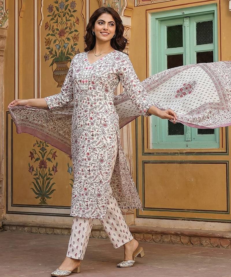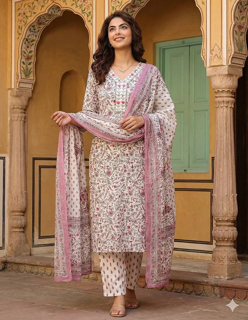 | Product Description | Anouk Pink And White Pure Cotton Straight Kurta Set With V Neck,Side Slits Regular Top Design Floral Print Soft Fabric Ideal For Festive Casual Occasions. |