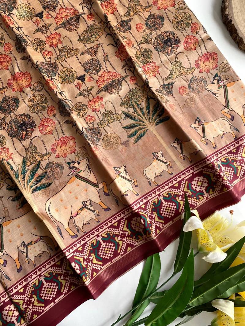 Product Name Beige Dola Viscose Digital Print Saree With Unstitched Blouse