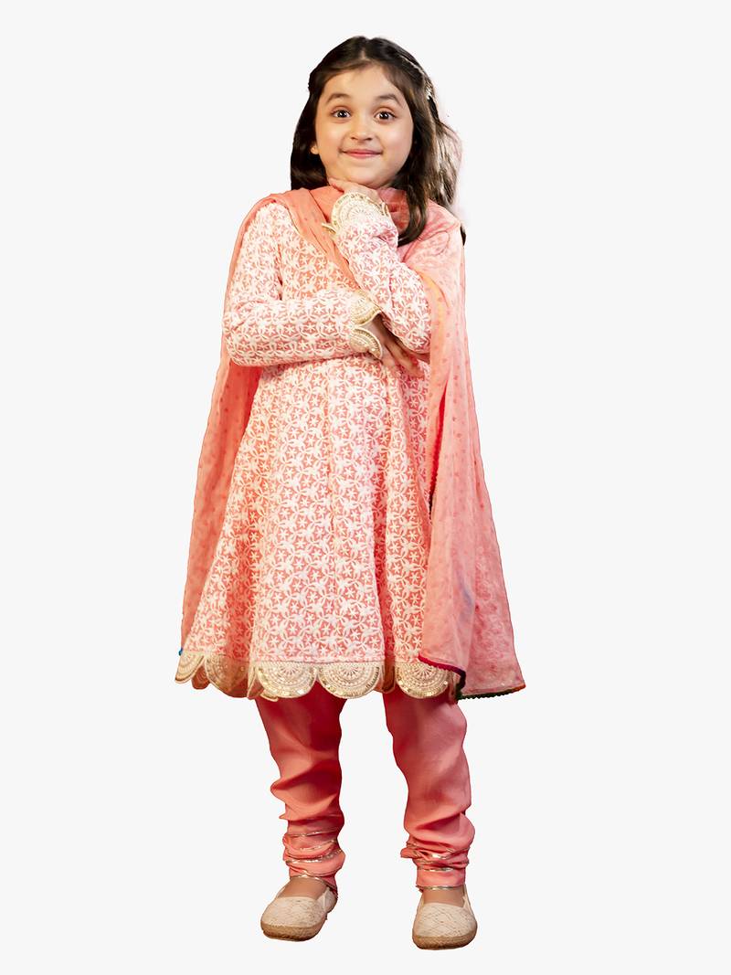 | Product Description | This Set Includes Chikankari Kurta With Santoon Chudidar And Chiffon Dupatta, Finished With Layer Of Lace. This Kurta Comes With Linen Inside For Complete Comfort Of Your Kid. |
