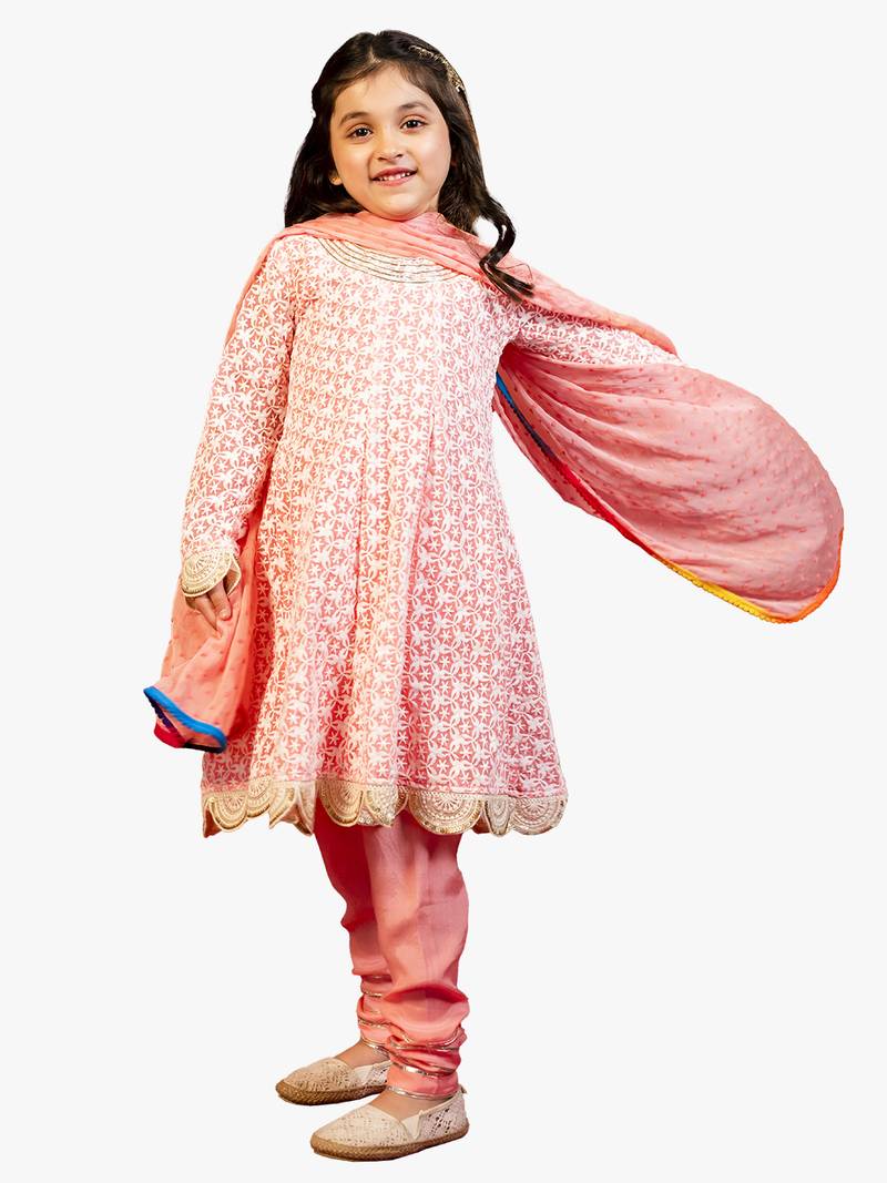 | Product Name | Jilmil Girl's Neon Pink Chikankari Suit (Set Of 3) | |