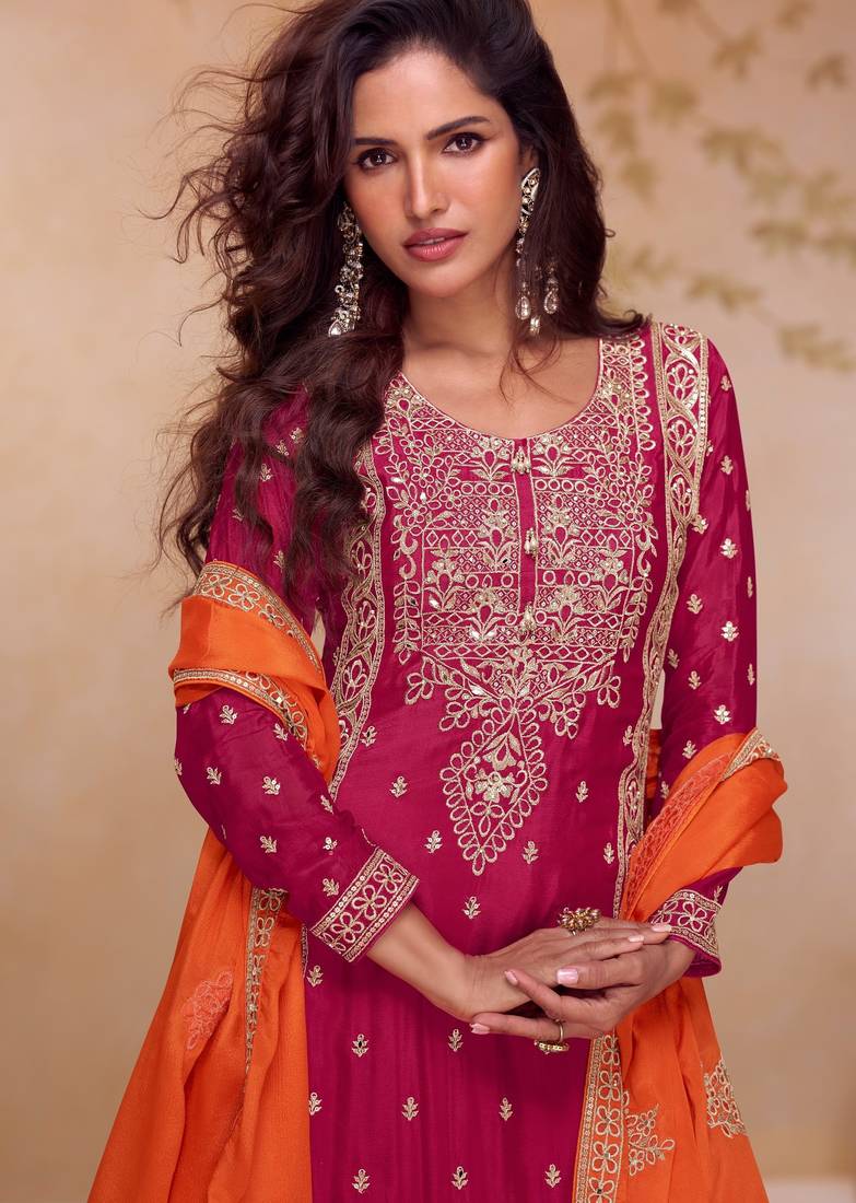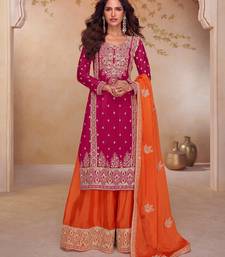 | Product Name | Magenta Embroidered Chinon Free Size Stitched Palazzo Style Salwar Suit | |