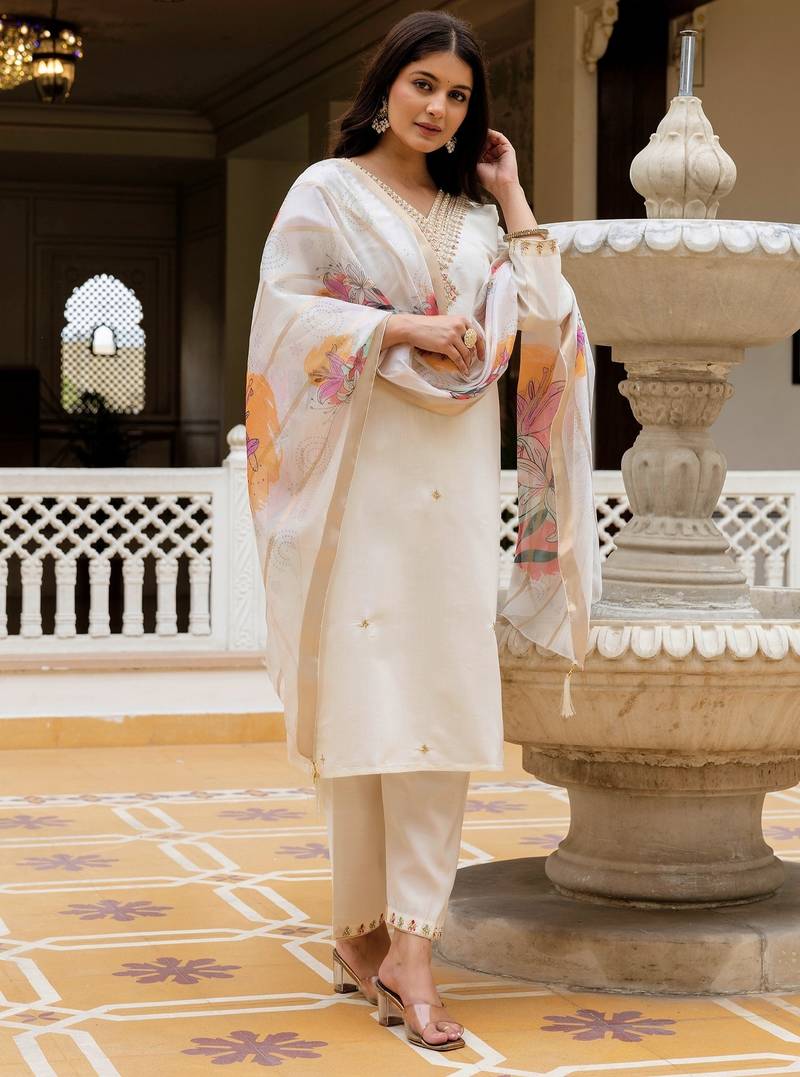Product Name White Embroidered Viscose Chanderi Kurta Set With Dupatta