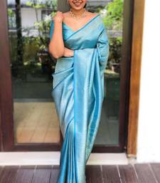 Elegance aqua blue woven silk cotton saree with unstitched blouse