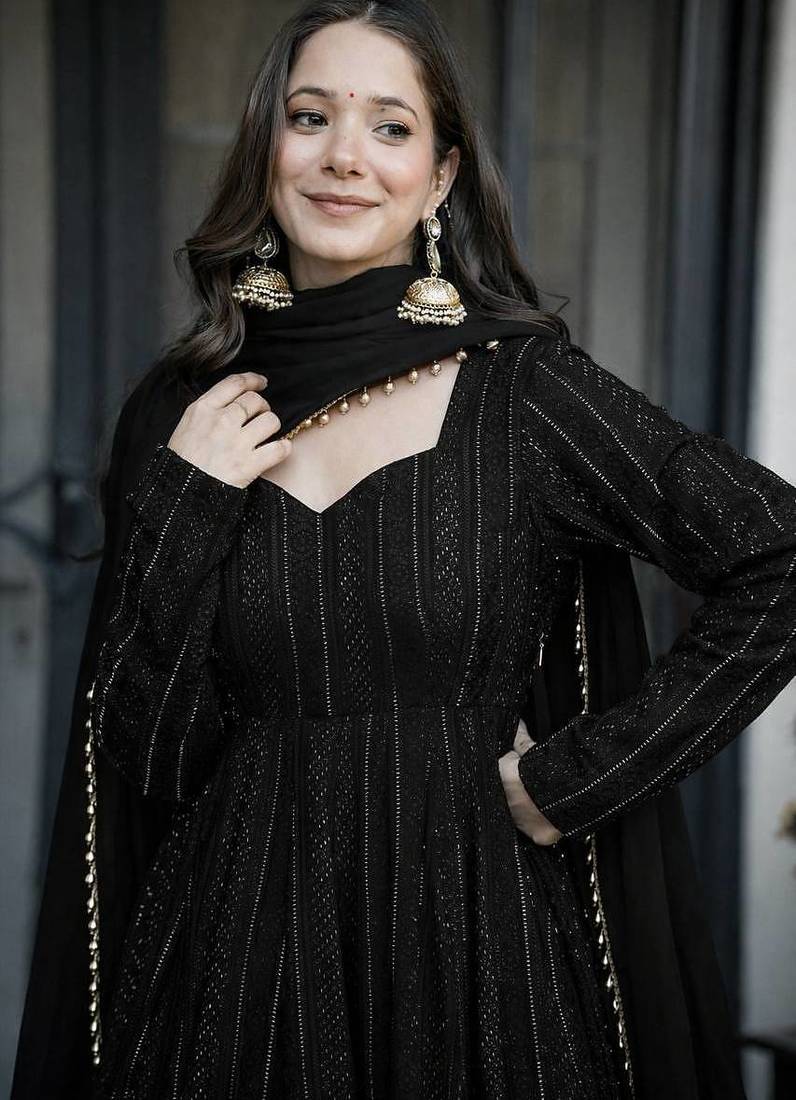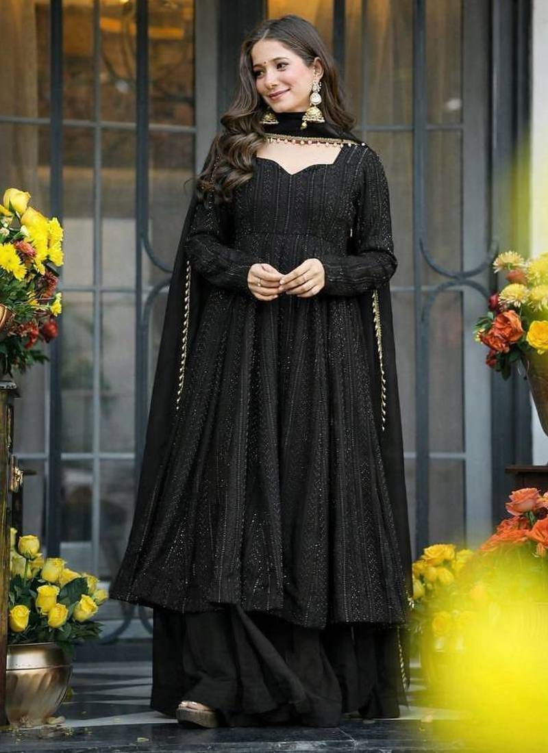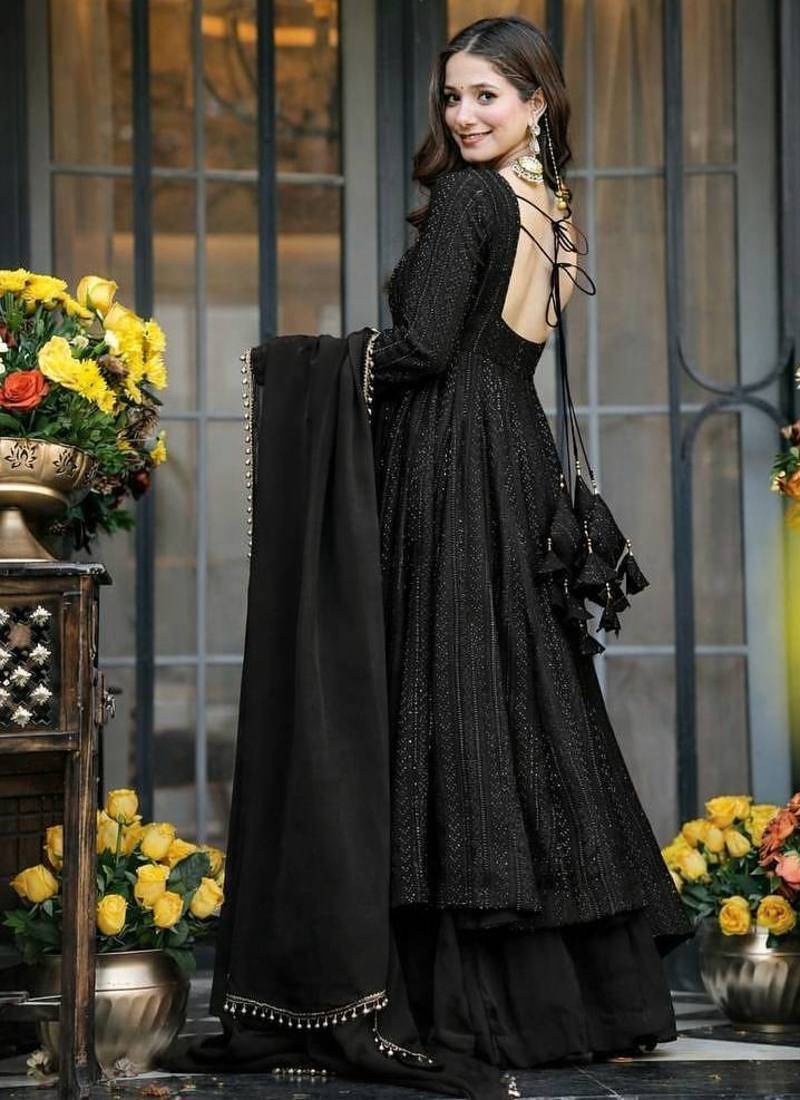 | Product Name | Black Sequins & Zari Embroidered Faux Blooming Fully Stitched Anarkali Gown | |