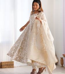 | Product Name | Cream Woven Banarasi Jacquard Dola Silk Fully Stitched Anarkali Suit Set | |
