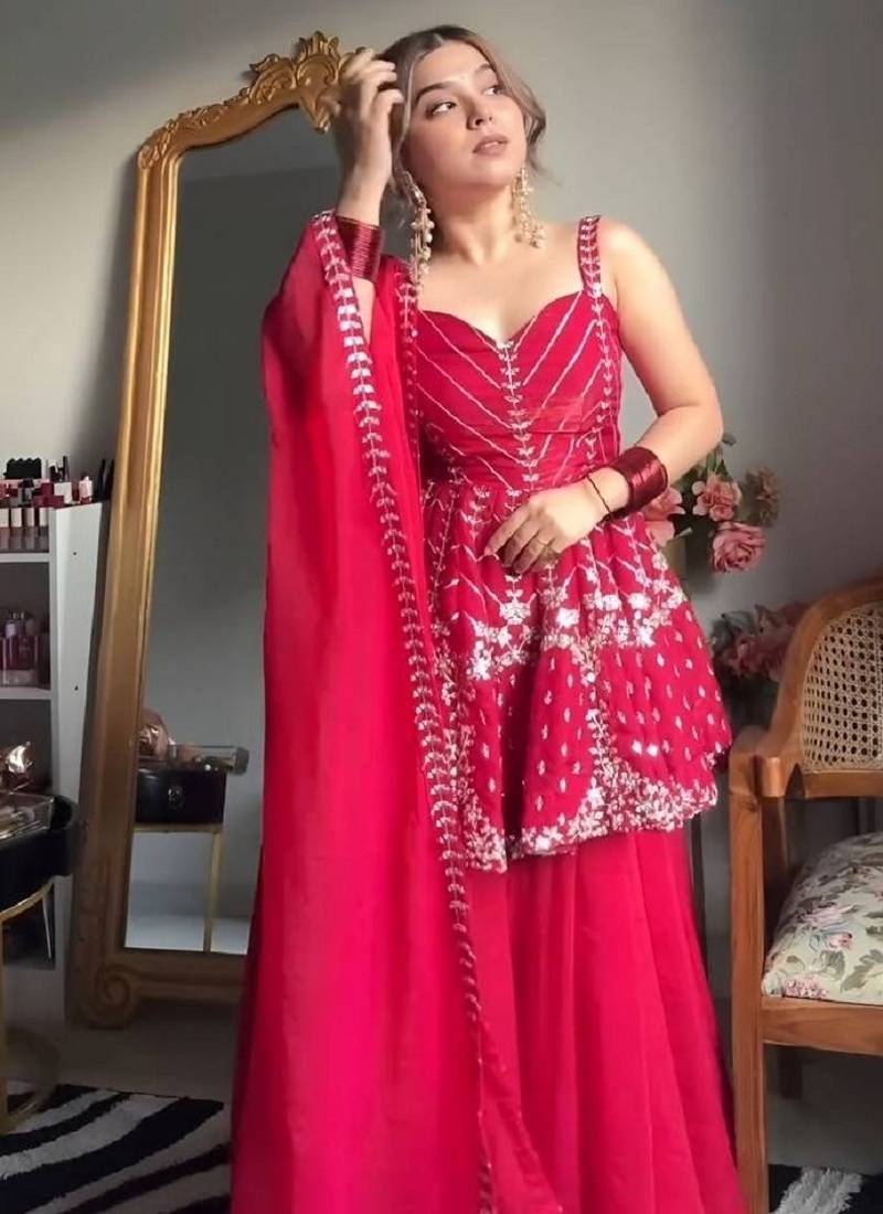 Package Contains : 1 Top (Kurta), 1 Sharara, 1 Dupatta
