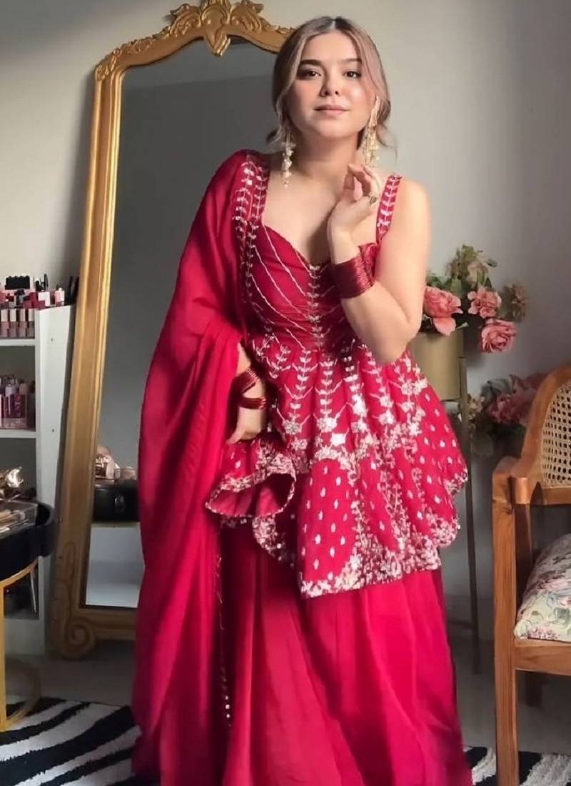 | Product Name | Pink Faux Blooming Peplum Sharara Set With Heavy Sequins & Multi Zari Thread Embroidery | |