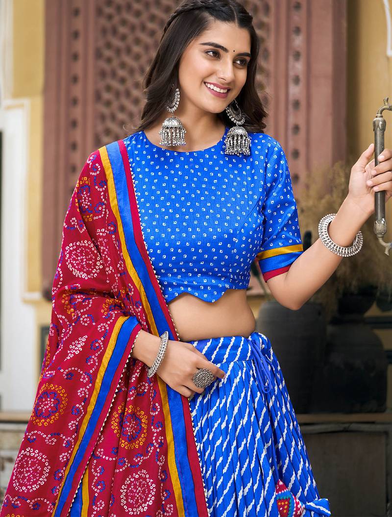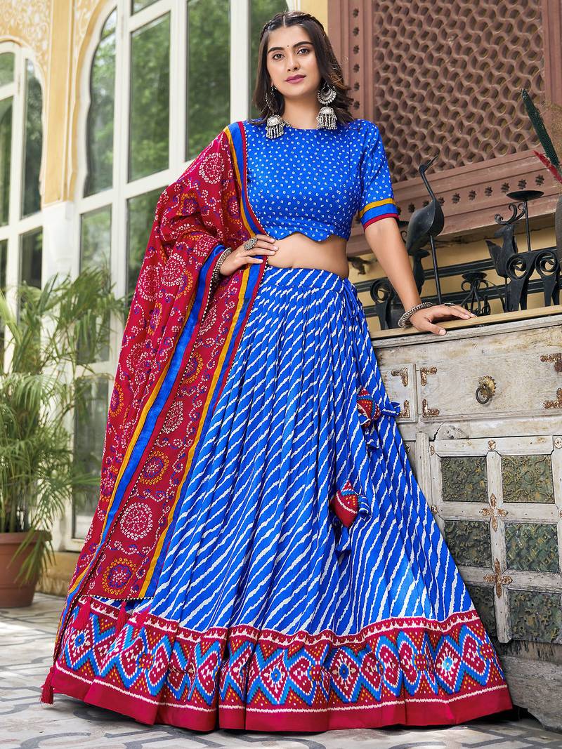 | Product Name | Blue Tussar Dola Silk Fabric Leheriya Print Lehenga Choli Set With Dupatta | |