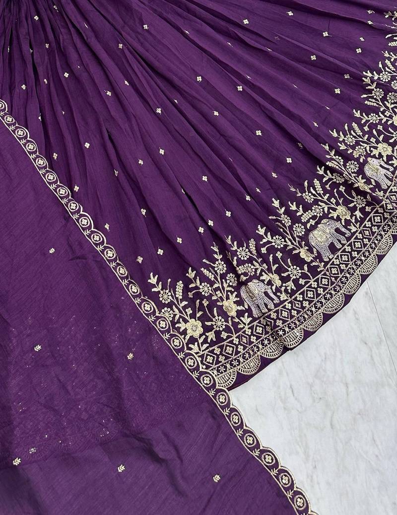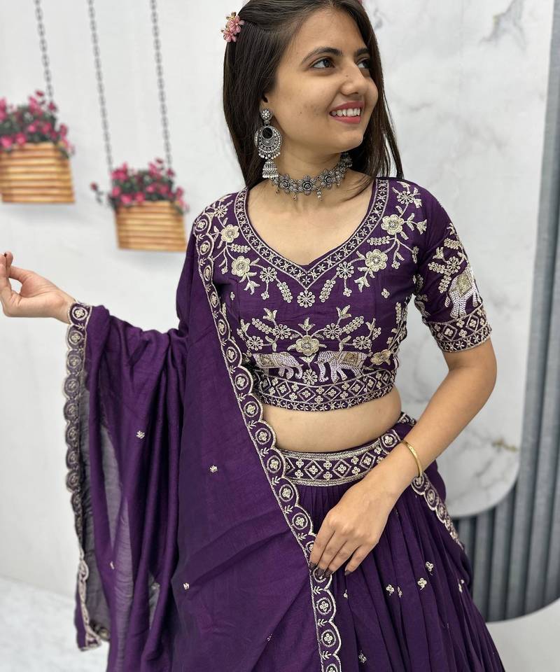 | Product Name | Wine Chinon Silk Fabric Sequins & Thread Embroidered Lehenga Choli Set With Matching Dupatta | |