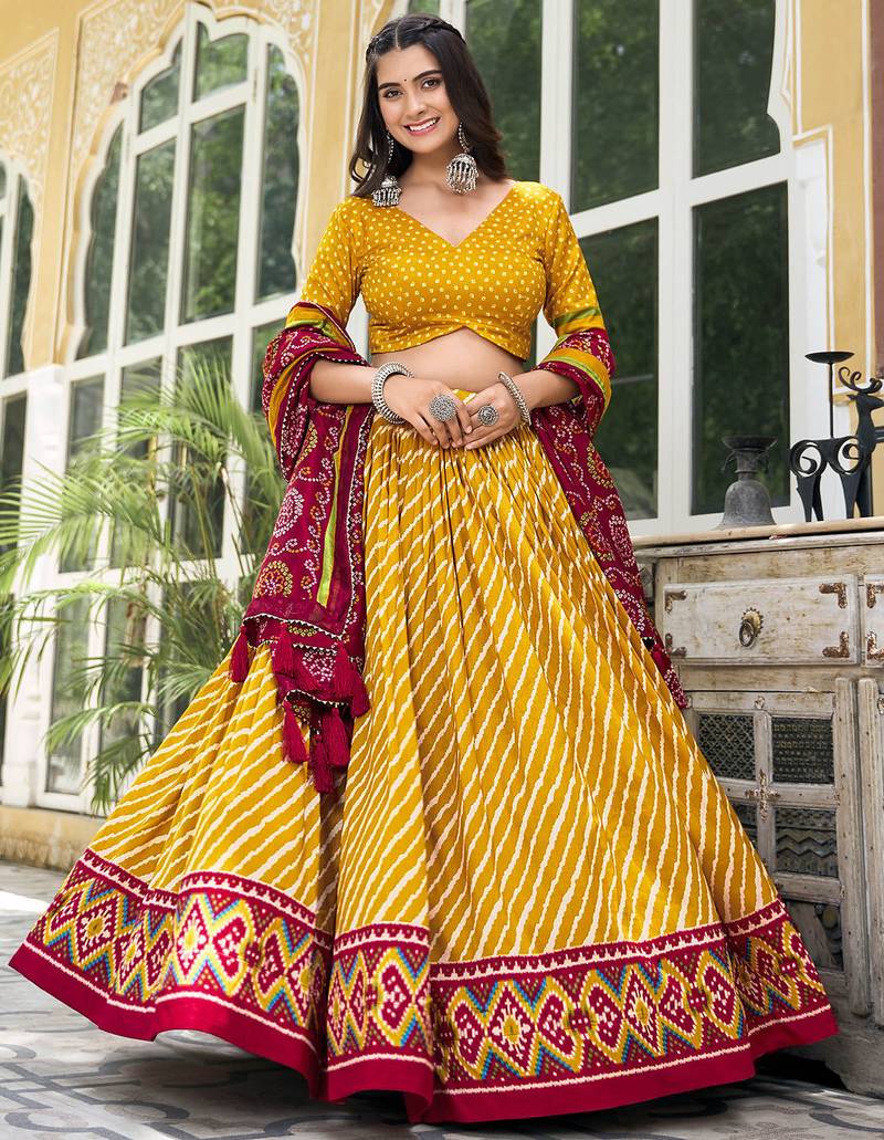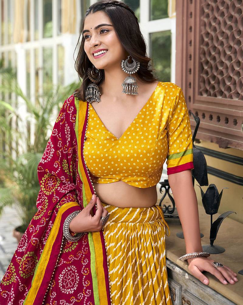 | Product Description | Rajasthani Lehenga Choli With Laheriya And Bandhani Print Lehenga(Stitched)