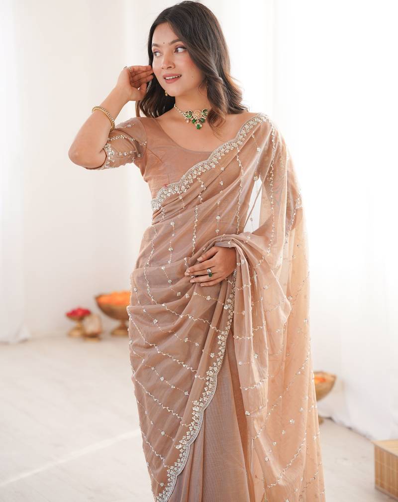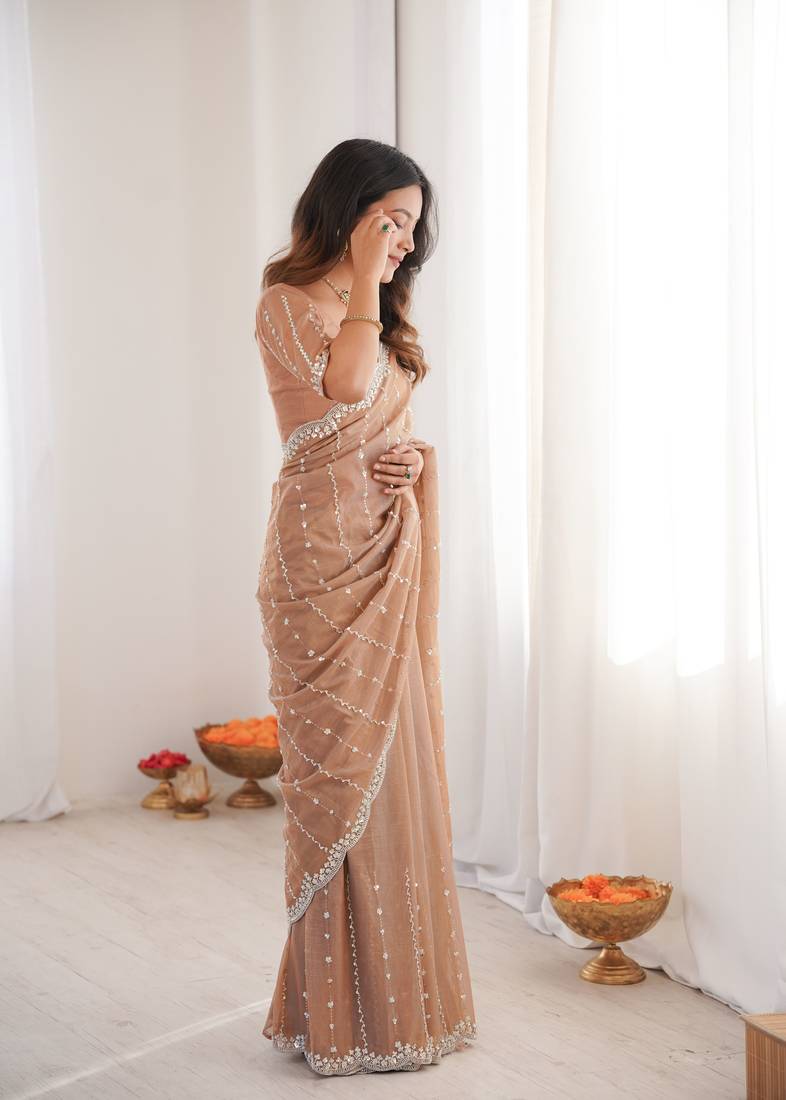 | • | Saree | : | Color- Beige / Fabric- Tissue |