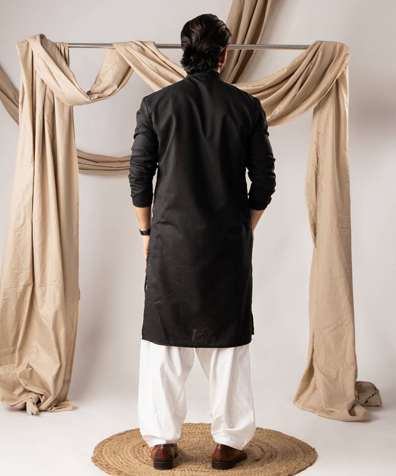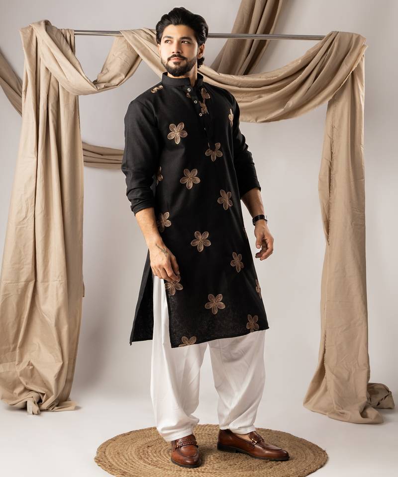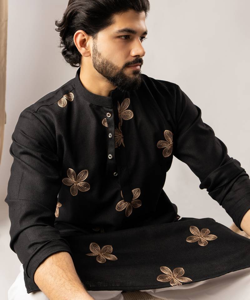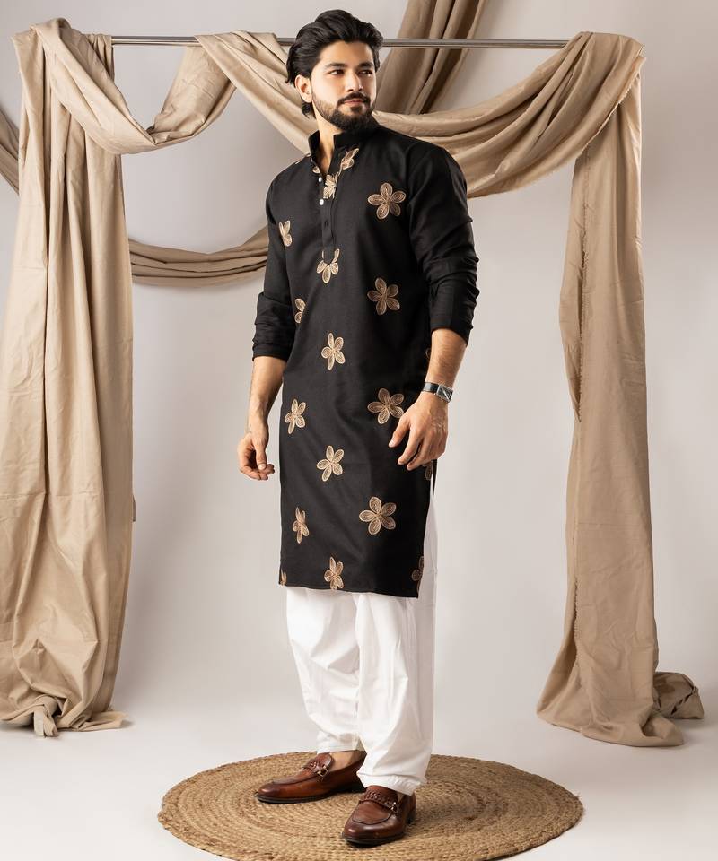 | Product Name | Black Color Linen Fabric Designer Embroidered Festive Special Kurta For Men | |