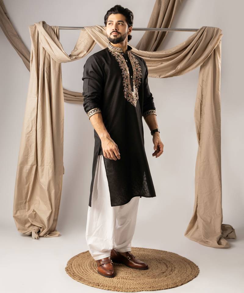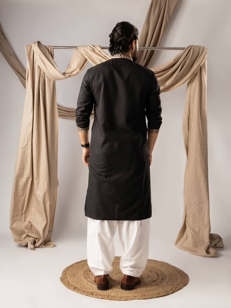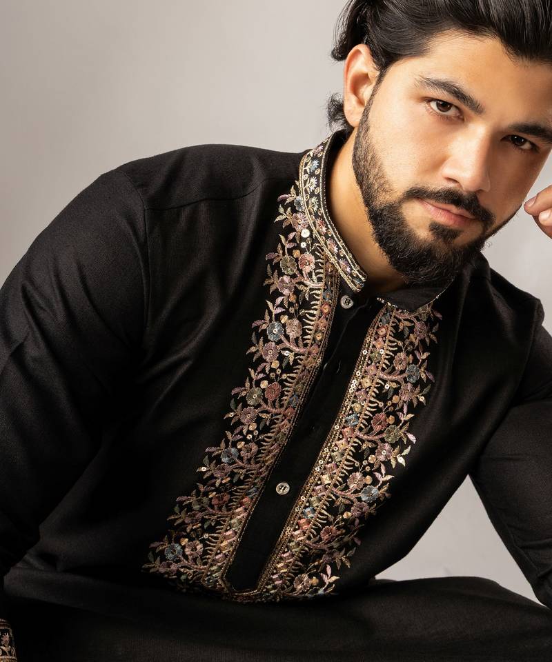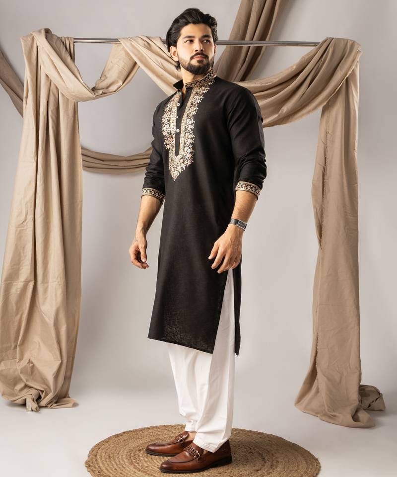 | Product Name | Black Color Smart Embroidered Kurta For Rich Classy Men's Looks | |